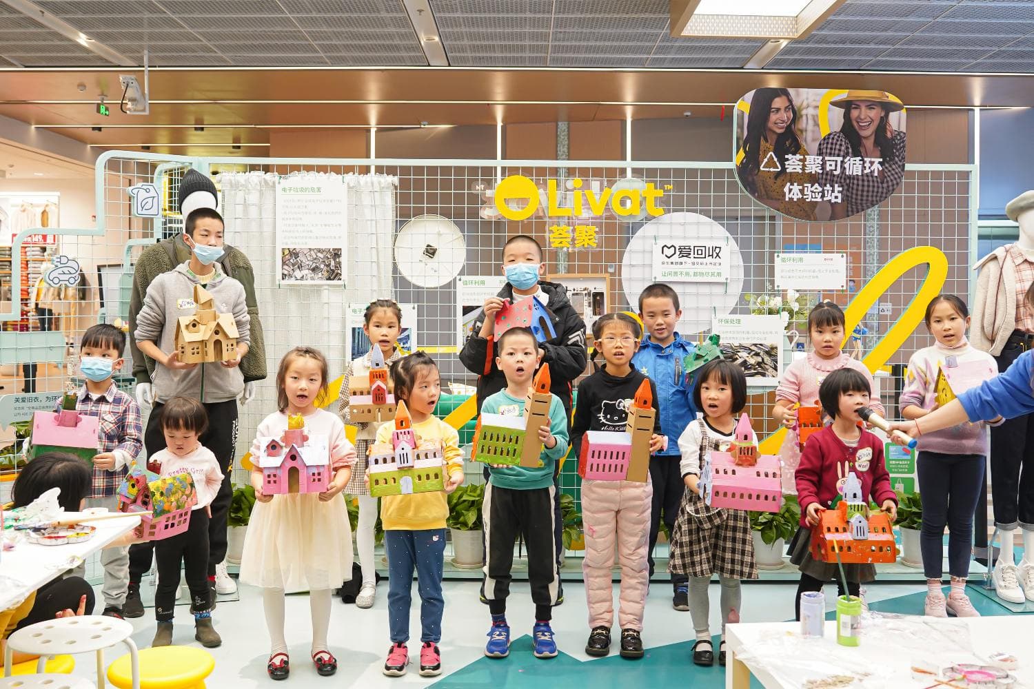 荟聚更与多家儿童成长机构联手合作,打造了一场亲子手工改造活动——废纸造新房,活动以小朋友们喜欢的中英互动故事剧开启,紧接着是动脑动手的DIY,将废旧纸箱重组上色,带来了一段寓教于乐的亲子时光。