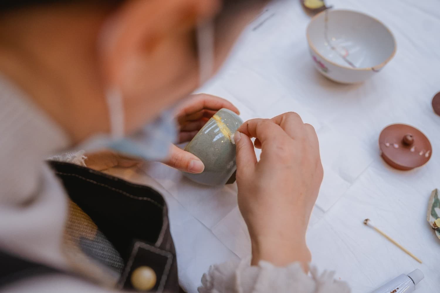 围绕主题”重塑之美”,展开了金缮工作坊,特邀非遗传承大师带领参与者一起以黄金为衣,以修缮为举,给予物品新生命的同时,更为自己增添一份美好的回忆。